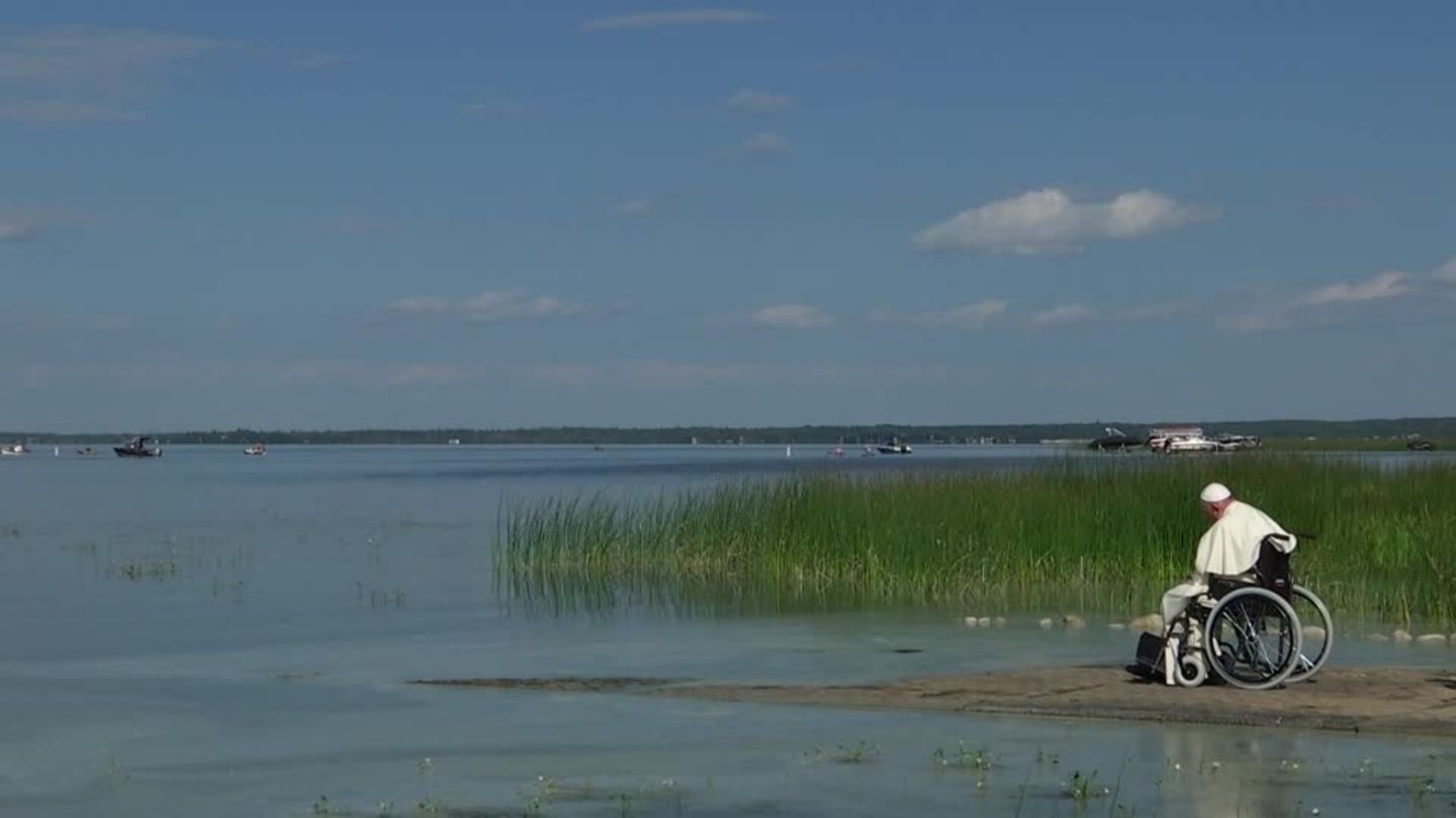 STORY: Bewegender Moment am Dienstag am See Lac Sainte Anne in der Provinz Alberta. Papst Franziskus hält inne und segnete das Gewässer. Der See gilt bei der indigenen Bevölkerung als heilig und hat auch...weiterlesen »