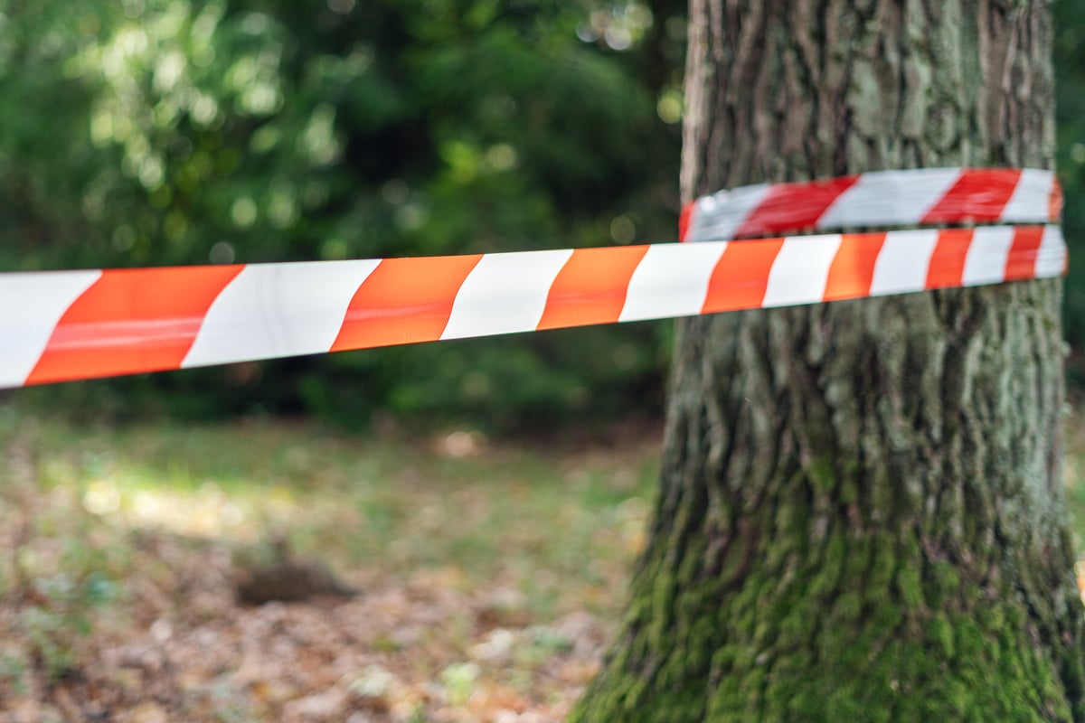 Ein Einsatzort der Polizei ist mit Flatterband abgesperrt. © Sebastian Kahnert/dpa/Symbolbild Leiche in Nordhessen gefunden Zuvor hatte die Polizei in dem Waldgebiet nach einem 14-jährigen Mädchen gesucht,...weiterlesen »