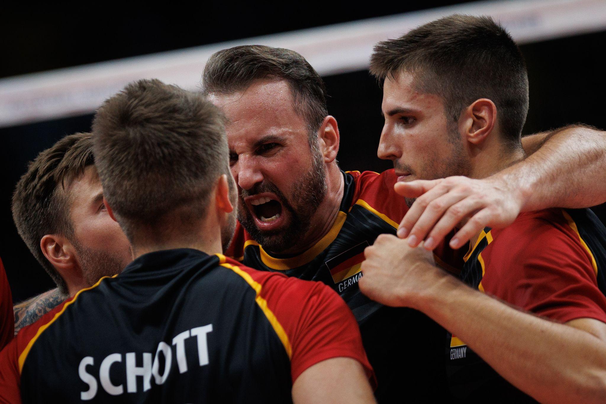 Die deutschen Volleyballer um Georg Grozer (M) haben beste Chancen, sich für die Olympischen Spiele in Paris zu qualifizieren. © Joao Gabriel Alves/dpa Deutschlands Volleyballer siegen auch gegen Tschechien....weiterlesen »