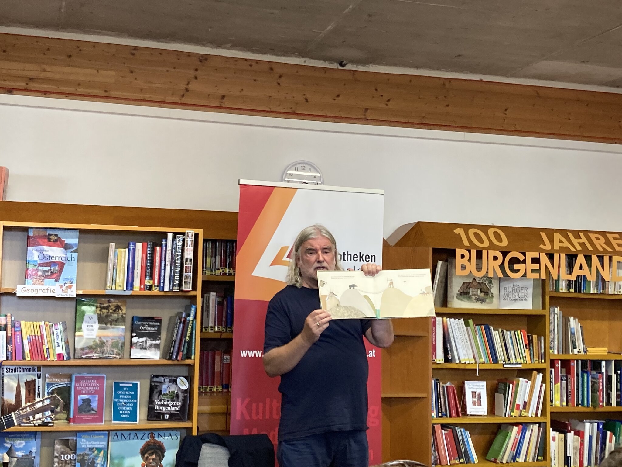 GÜSSING (dp). Heinz Janisch liest aus seinem neuen Buch "Die Brücke". Erich Sammer untermalt die Lesung mit seiner Gitarrenmusik. Das Publikum ist begeistert. Die Kinder stellen sich mit Büchern beim Autor...weiterlesen »
