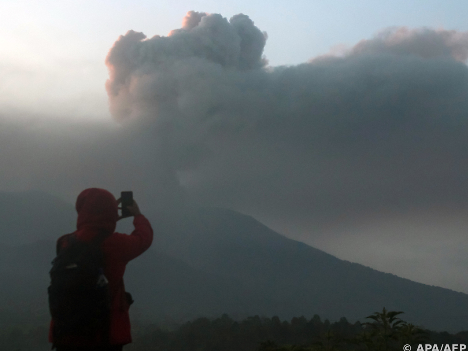 Indonesien, Bukit Tinggi: Blick auf die hohe Aschewolke beim Ausbruch des Vulkans Marapi bei Bukiti Tinggi in der Provinz West-Sumatra. © Quelle: Sijori Images/Sijori Images via Auf der indonesischen Insel...weiterlesen »