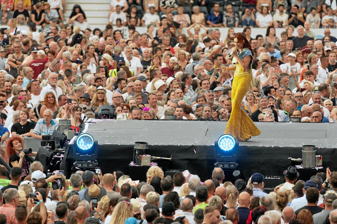 Aspach. Unter viel Applaus und Freudenschreien wird Andrea Berg am Freitagabend auf die Bühne im Stadion im Fautenhau gehoben. Zum Auftakt ihres 17. Heimspiels trägt die Sängerin einen gelb-glitzernden...weiterlesen »