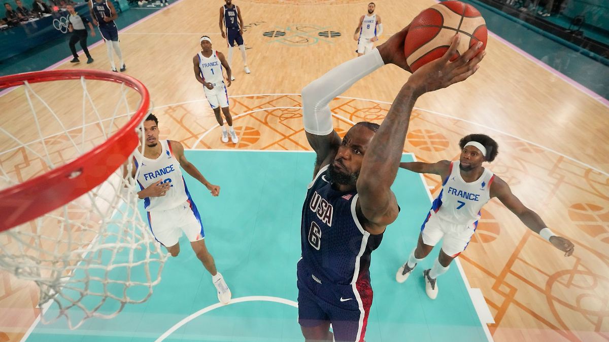 Superstar LeBron James führt das US-Team an. Copyright: Mark J. Terrill/Pool AP/dpa Die US-Superstars werden bei Olympia in Paris zwar geprüft. Doch auch Gastgeber Frankreich kann die Basketball-Großmacht...weiterlesen »