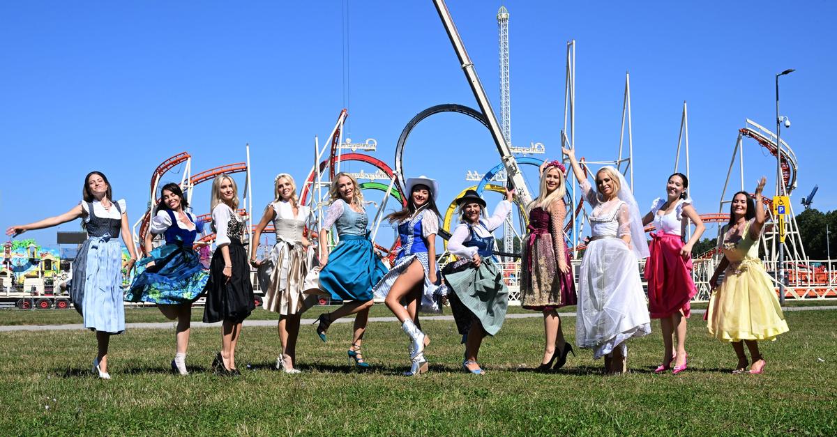 Blau, Gelb oder Rot? Bei der Farbwahl können Dirndlträgerinnen ganz nach dem eigenen Geschmack gehen. Hier die Oktoberfest Dirndl-Trends beim Dirndlgipfel 2024 vor der Achterbahn auf der Theresienwiese....weiterlesen »