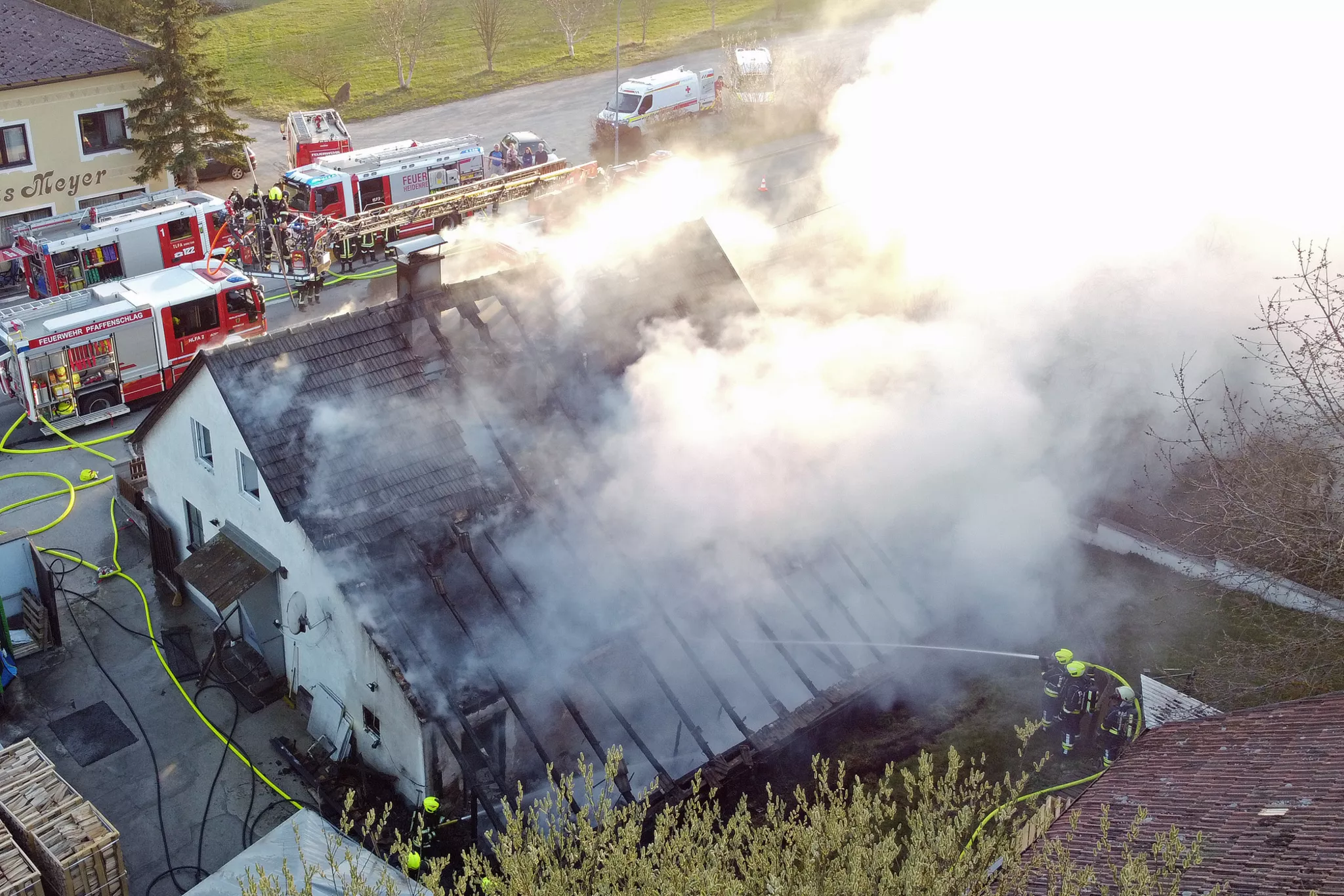 PFAFFENSCHLAG (NÖ): Samstagabend, 12. April 2025, brach in einem Wohnhaus in Pfaffenschlag bei Waidhofen an der Thaya ein Feuer aus. Kurz darauf waren 95 Feuerwehrleute vor Ort, um den Brand zu löschen....weiterlesen »