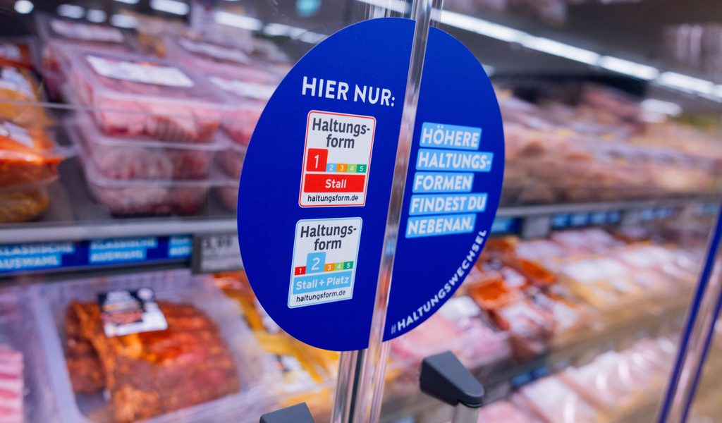 Die Kühlung ist künftig in Farbsegmente unterteilt: Im blauen Bereich gibt es Fleisch aus niedrigeren Haltungsformen, im grünen Bereich Ware aus höheren Haltungsformen und Hackfleisch. Quelle: Rolf Vennenbernd/dpa...weiterlesen »