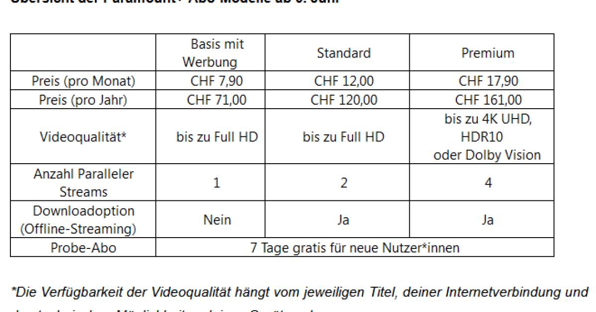 Streamingfans erhalten ab sofort Paramount+ zum Preis von ab 7,90 Franken pro Monat oder 71 Franken pro Jahr. Seit 5. Juni 2025, ist das werbeunterstützte Basis-Abo für Paramount+ in Deutschland, Österreich...weiterlesen »