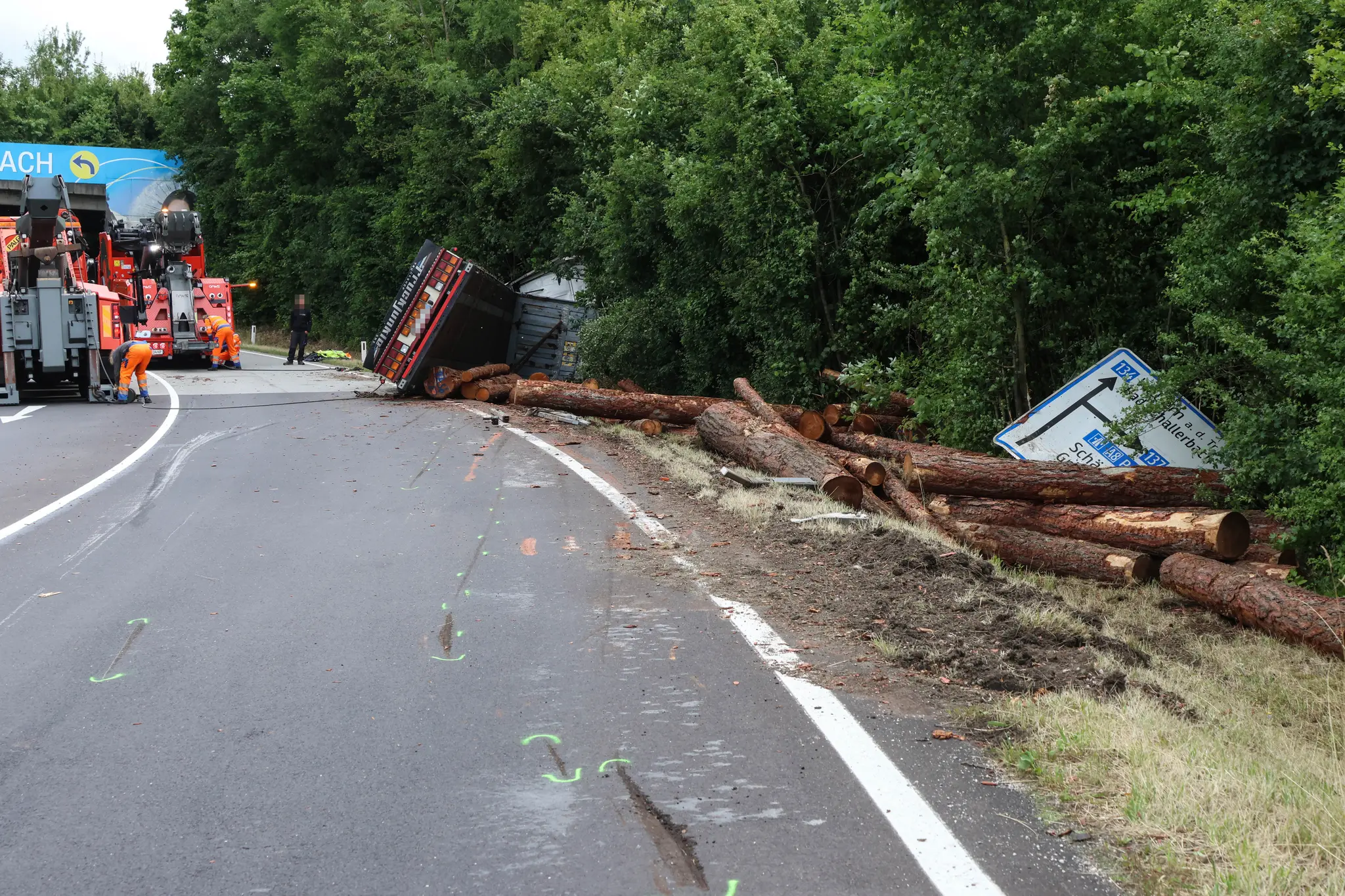 WALLERN (OÖ): Ein Holztransporter ist Mittwochfrüh, 9. Juli 2025, auf der B134 Wallerner Straße bei Wallern an der Trattnach (Bezirk Grieskirchen) von der Straße abgekommen und umgestürzt. Der Unfall passierte...weiterlesen »