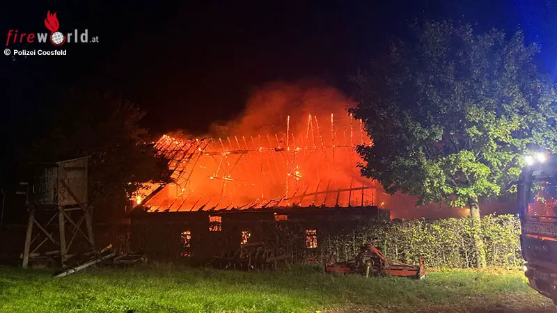 Ascheberg - Flammen wüteten am späten Samstagabend in Ascheberg in Nordrhein-Westfalen . Eine Scheune hatte im Kreis Coesfeld Feuer gefangen und wurde fast vollständig zerstört. Glücklicherweise wurde...weiterlesen »