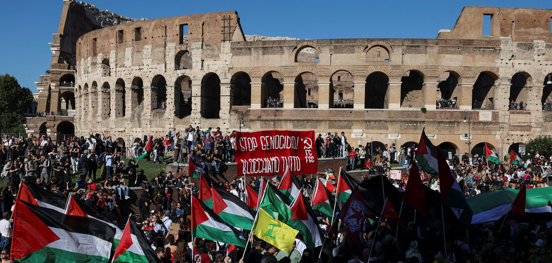 Massendemonstration gegen Israels Krieg in Gaza füllt die Straßen von Italiens Hauptstadt Ablehnung der NATO und Unterstützung des palästinensischen Widerstands: Demonstration in Rom (4.10.2025) Massen...weiterlesen »