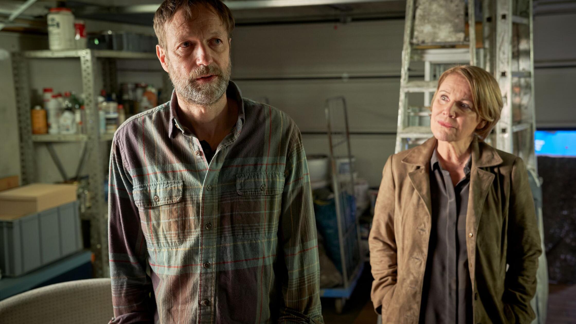 Szene des Krimis „Marie Brand und der überwundene Tod“ mit Schauspieler Martin Skoda als Malermeister Stefan Fassbender und Mariele Millowitsch als Marie Brand. Copyright: Guido Engels/ZDF /dpa Dieser...weiterlesen »
