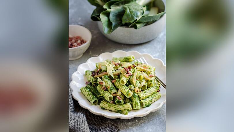 Mangold verleiht dem klassischen Pesto eine milde Note und leuchtend grüne Farbe. In Kombination mit knusprigen Speckwürfeln und al dente gekochten Rigatoni entsteht ein Gericht, das Tradition und Innovation...weiterlesen »