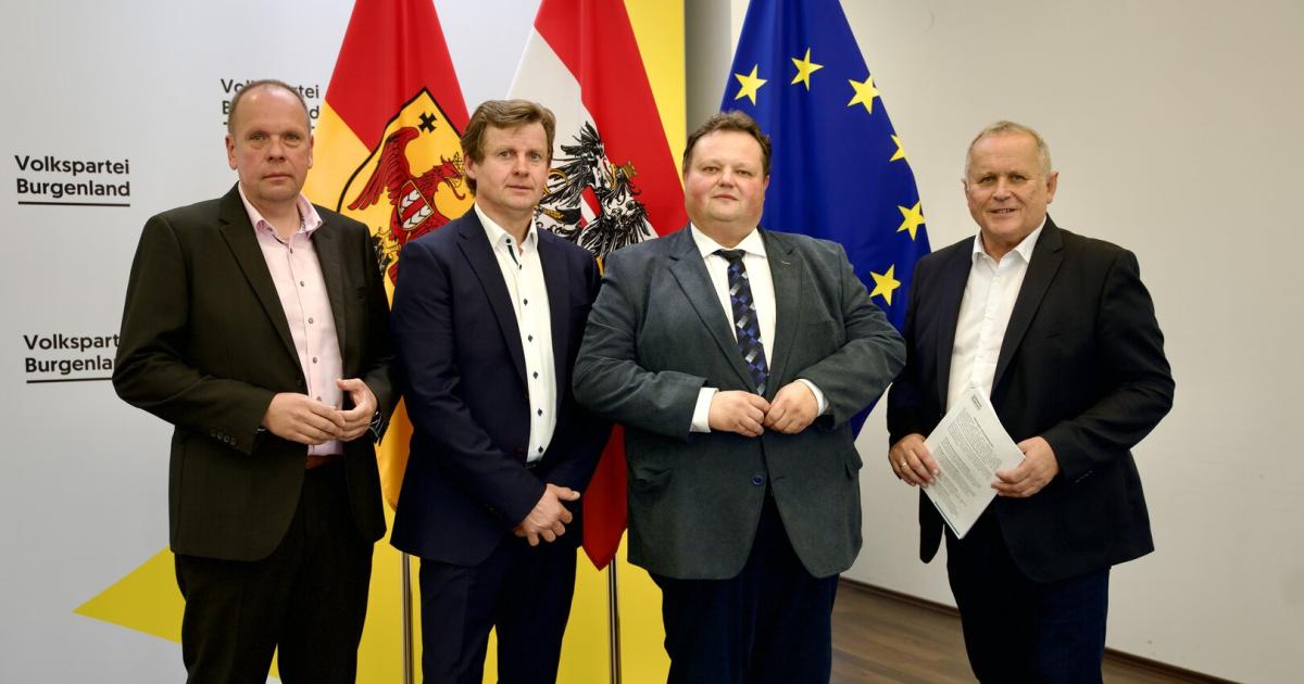 ÖVP-Bürgermeister Mezgolits, Heisz, Strobl und Grandits (v.li.) fordern Sofortprogramm des Landes für Kommunen. Rund 35 der 171 burgenländischen Gemeinden befinden sich in finanzieller Schieflage und versuchen...weiterlesen »