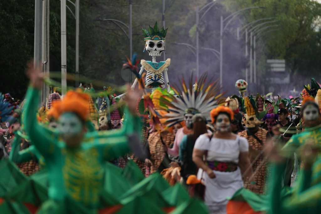 Papp-Skelette tanzen, bunte Wagen rollen: Geschminkte und verkleidete Menschen feiern in Mexiko-Stadt den Día de Muertos. Und das mit einer Parade, die es früher nicht gab – inspiriert von James Bond.weiterlesen »