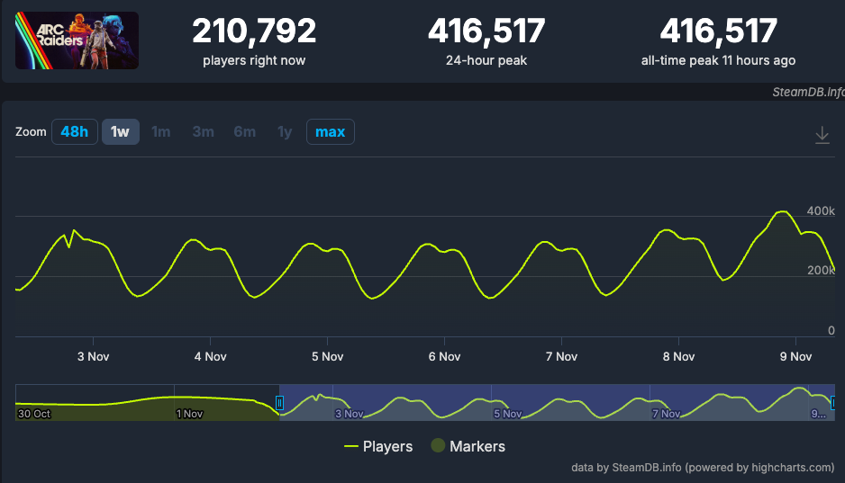 416.517 gleichzeitig ARC Raiders setzt seinen Höhenflug fort: Mehr als eine Woche nach dem Release hat der Sci-Fi-Shooter einen neuen Allzeit-Rekord auf Steam aufgestellt. Mit 416.517 gleichzeitigen Spielern...weiterlesen »