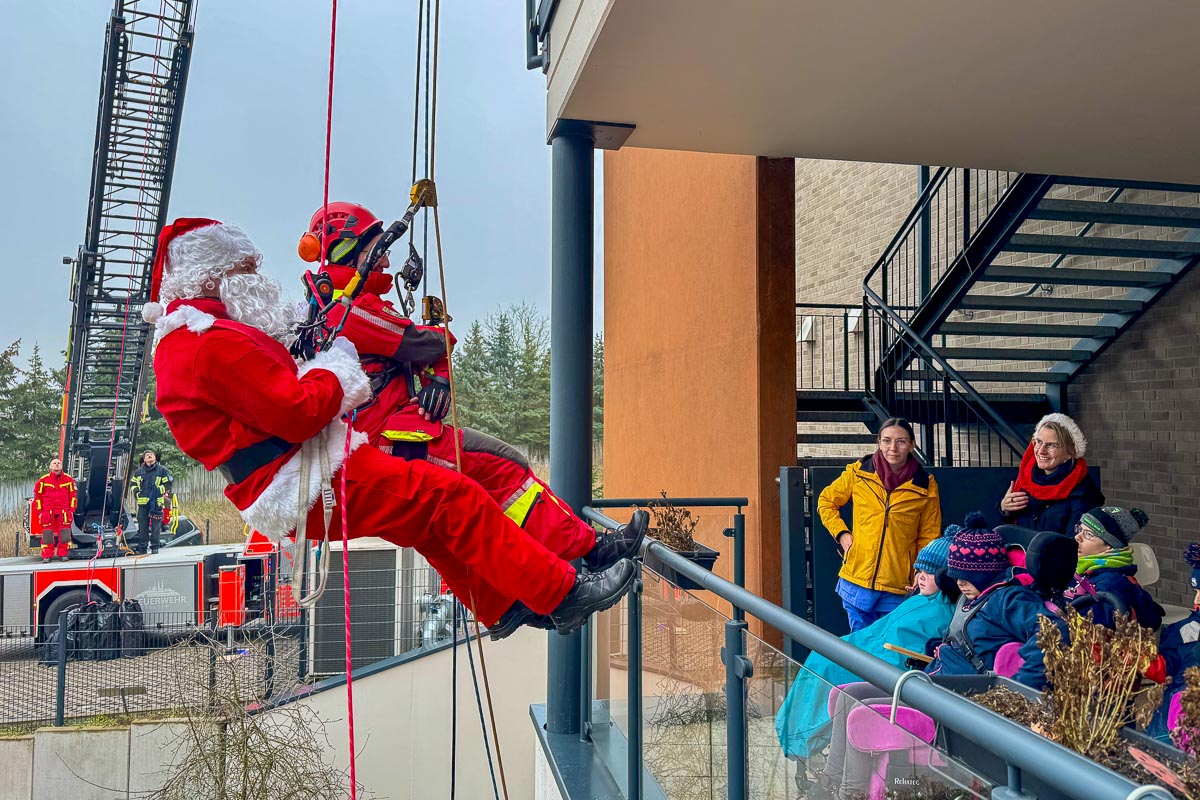 Höhenretter der Feuerwehr Wiesbaden klettern am Nikolaustag nicht für Einsätze, sondern für Kinderlächeln. Im Zwerg-Nase-Zentrum überraschen sie Kinder und junge Erwachsene mit Geschenken aus der Luft...weiterlesen »