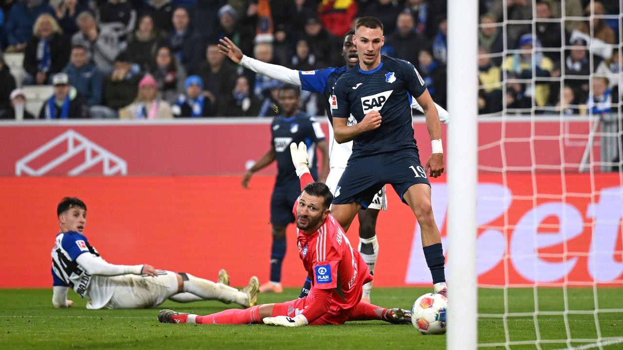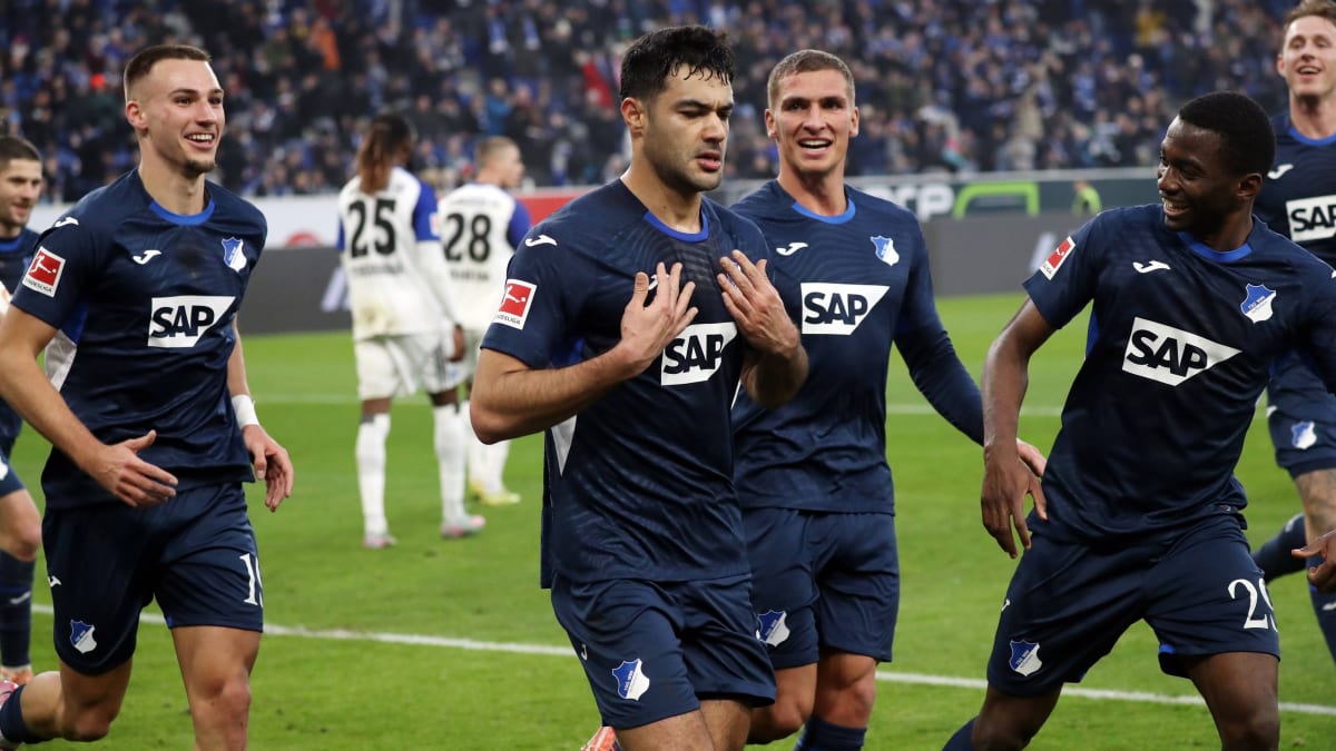 Ozan Kabak (3. Spieler von l.) bejubelt Tor und Rückkehr in die Startelf nach schwierigen Zeiten. Copyright: Uwe Anspach/dpa Hoffenheim landet den vierten Heimsieg in Serie. Für den HSV endet eine Mini-Serie...weiterlesen »