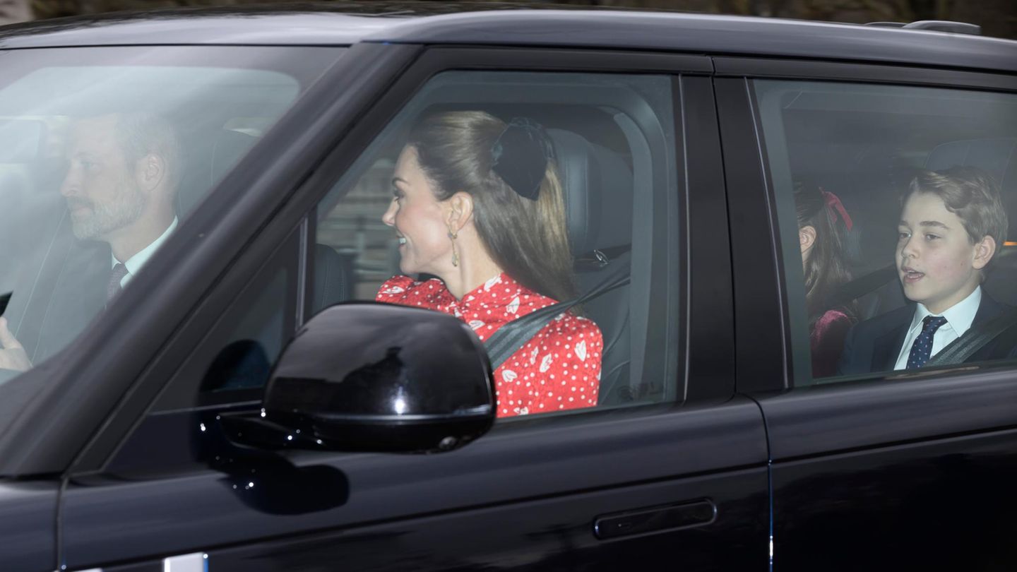 Catherine, Princess of Wales, Prinz William , Prinz George und Prinzessin Charlotte sind voller Vorfreude im Auto. Auf dem Weg zum traditionellen Weihnachtsmittagessen der britischen Königsfamilie strahlen...weiterlesen »
