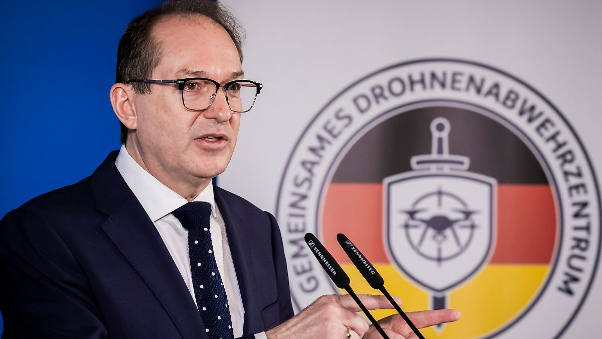 Bundesinnenminister Alexander Dobrindt (CSU) dankt der Bundespolizei, die beim Aufbau des neuen Drohnenabwehrzentrums eine wichtige Rolle spielt. Copyright: Tobias Schwarz/AFP Pool/dpa Gesprochen wird...weiterlesen »