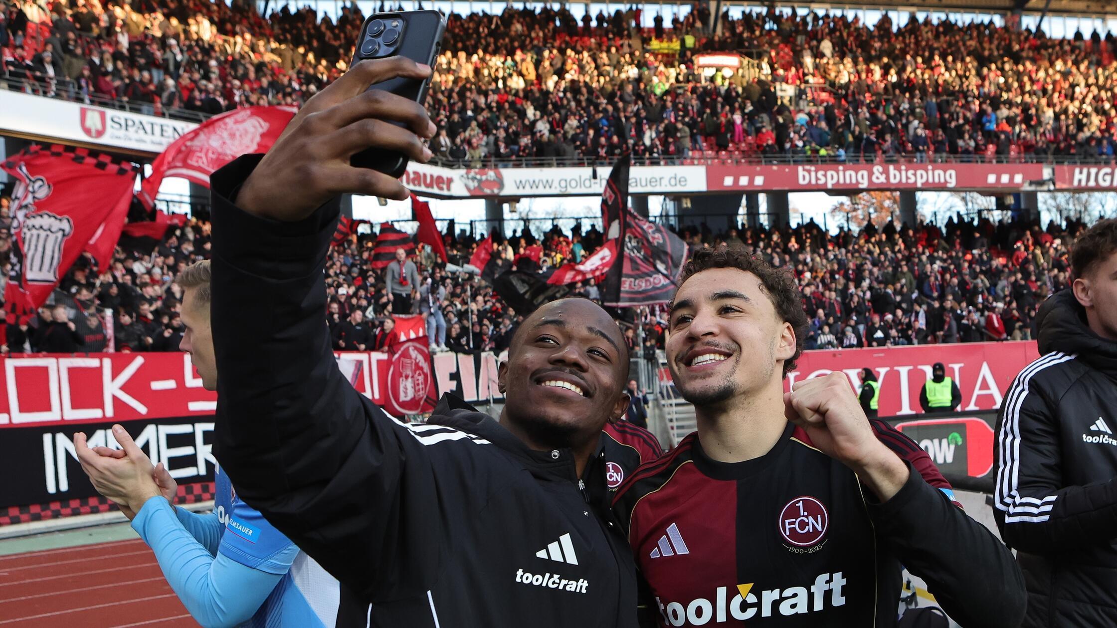 Ausgelassener Nürnberger Jubel mit Torschütze Mohamed Zoma (oben links) und Trainer Miroslav Klose nach dem 2:1. Copyright: Daniel Löb/dpa Fußball paradox: Hannover 96 dominiert lange im Max-Morlock-Stadion....weiterlesen »