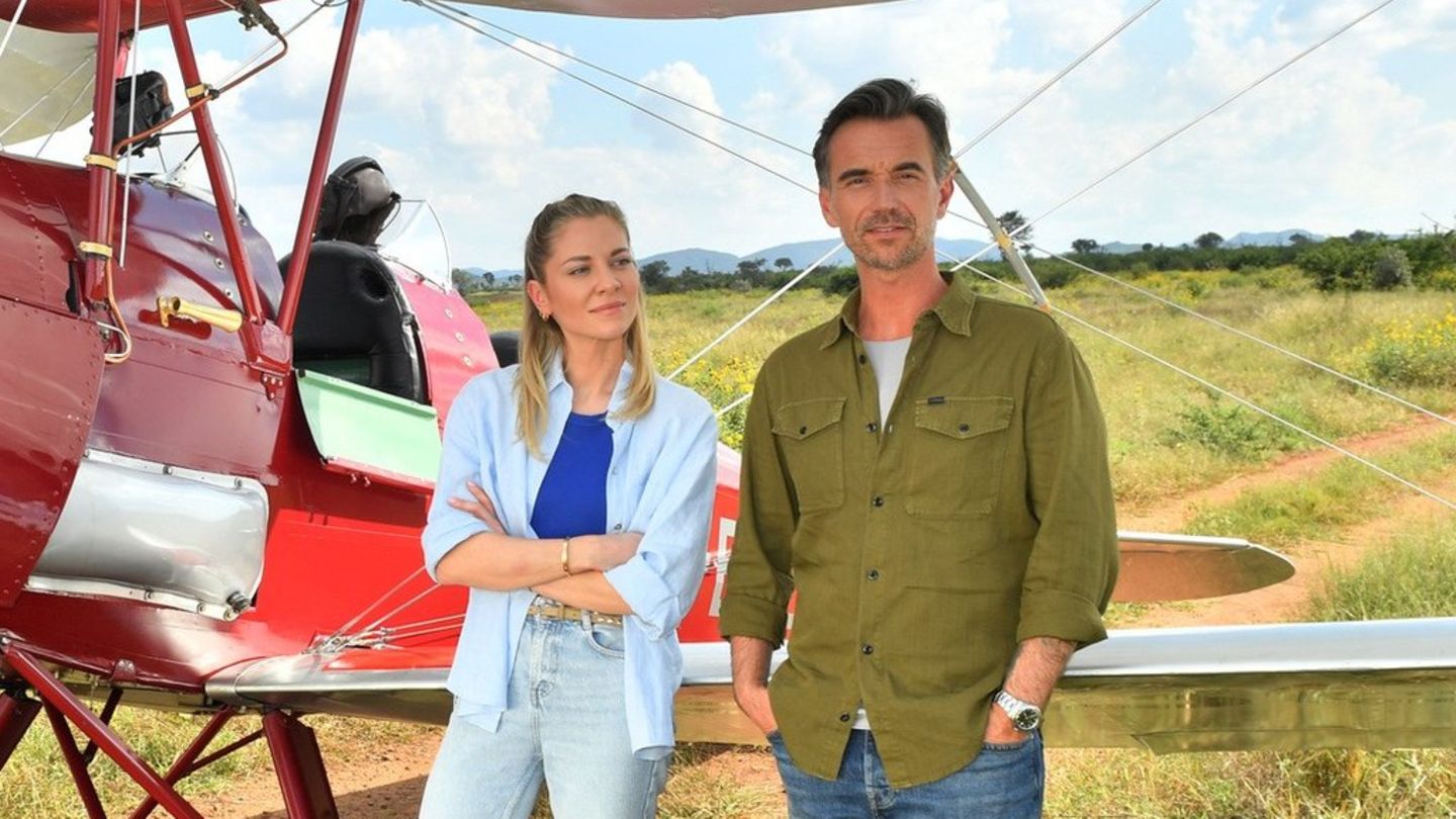 "Das Traumschiff: Afrika: Madikwe": Nach einer Notlandung in der Savanne kommen sich Sophia Berg ( Valentina Pahde ) und Max Parger ( Florian Silbereisen ) näher. Im "Traumschiff" küssen sich Florian Silbereisen...weiterlesen »