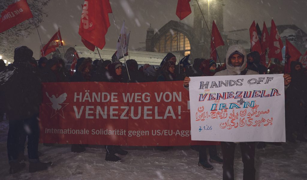 Demo gegen US-Attacke auf Venezuela läuft im Schnee durch die City