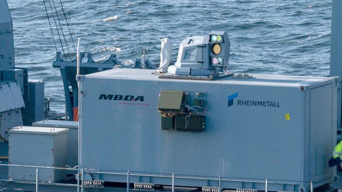Der Laserdemonstrator von Rheinmetall und MBDA auf einem deutschen Marineschiff. Inzwischen ist er an Land gebracht worden. Copyright: -/Rheinmetall/dpa Um Laserschwerter mit bunten Strahlen wie bei «Star...weiterlesen »