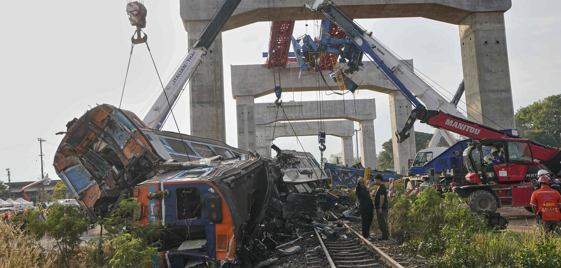 Ein Kran fällt auf Gleise, ein Zug prallt dagegen: Nach dem Unglück in Thailand steigt die Zahl der Todesopfer. Auch zahlreiche Passagiere wurden verletzt.weiterlesen »
