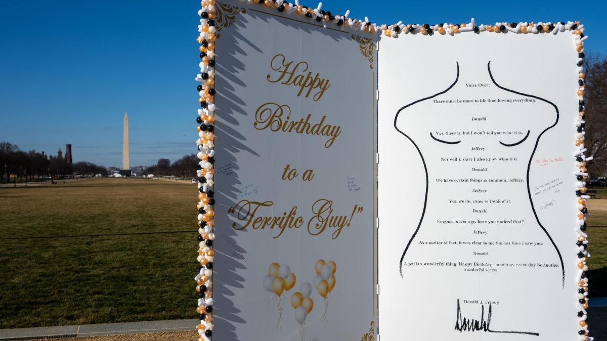 Der US-Präsident weist jede Urheberschaft an dem mehr als 20 Jahre alten Gruß zum Geburtstag des verurteilten Sexualstraftäters Epstein zurück. Jetzt steht dieser an prominenter Stelle in Washington. Geburtstagsgrüße,...weiterlesen »