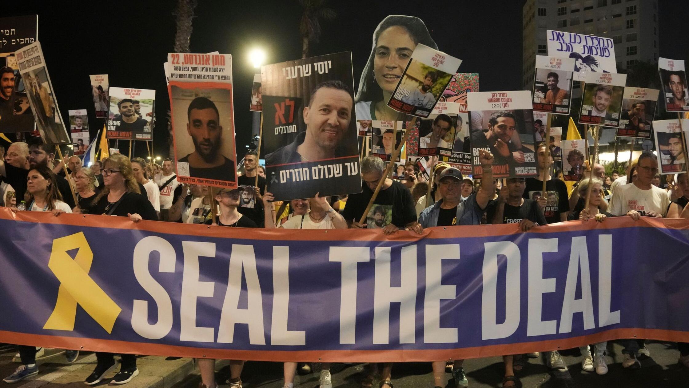 Menschen protestieren im Juli 2025 vor der US-Botschaft in Tel Aviv für ein Ende des Krieges und die sofortige Freilassung der von der Hamas im Gazastreifen festgehaltenen Geiseln sowie gegen die Regierung...weiterlesen »