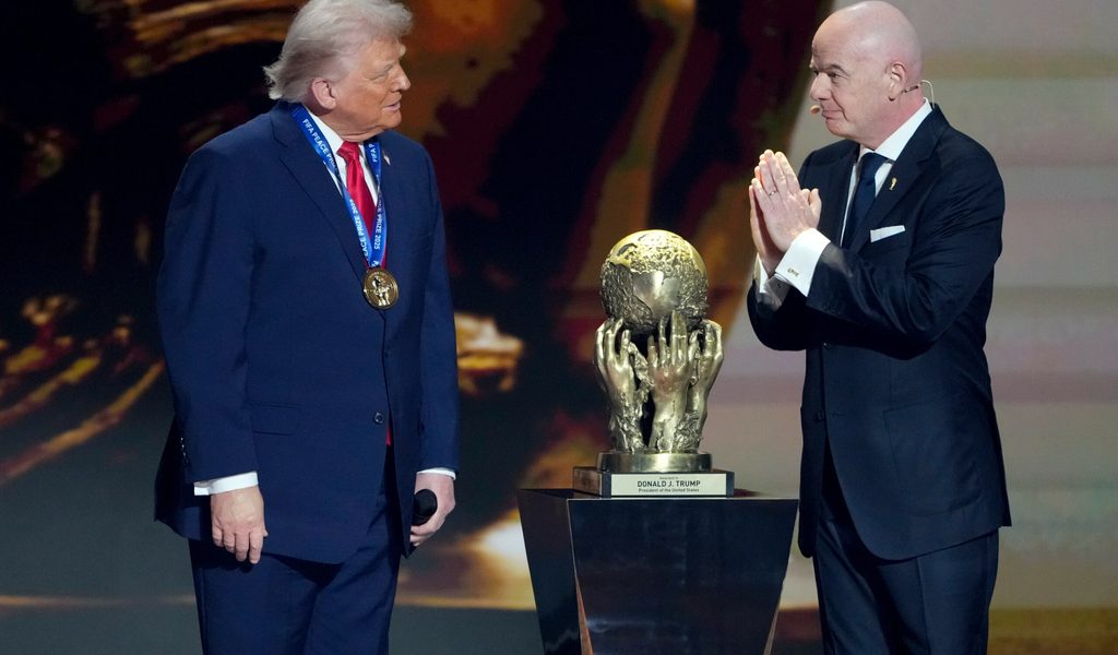 Für viele war es Anbiederei: FIFA-Boss Infantino (r.) und US-Präsident Trump bei der WM-Auslosung. (Archivbild) Copyright: Chris Carlson/AP/dpa Selbst Gianni Infantinos Vorgänger schaltet sich in die (Schein-)Debatte...weiterlesen »