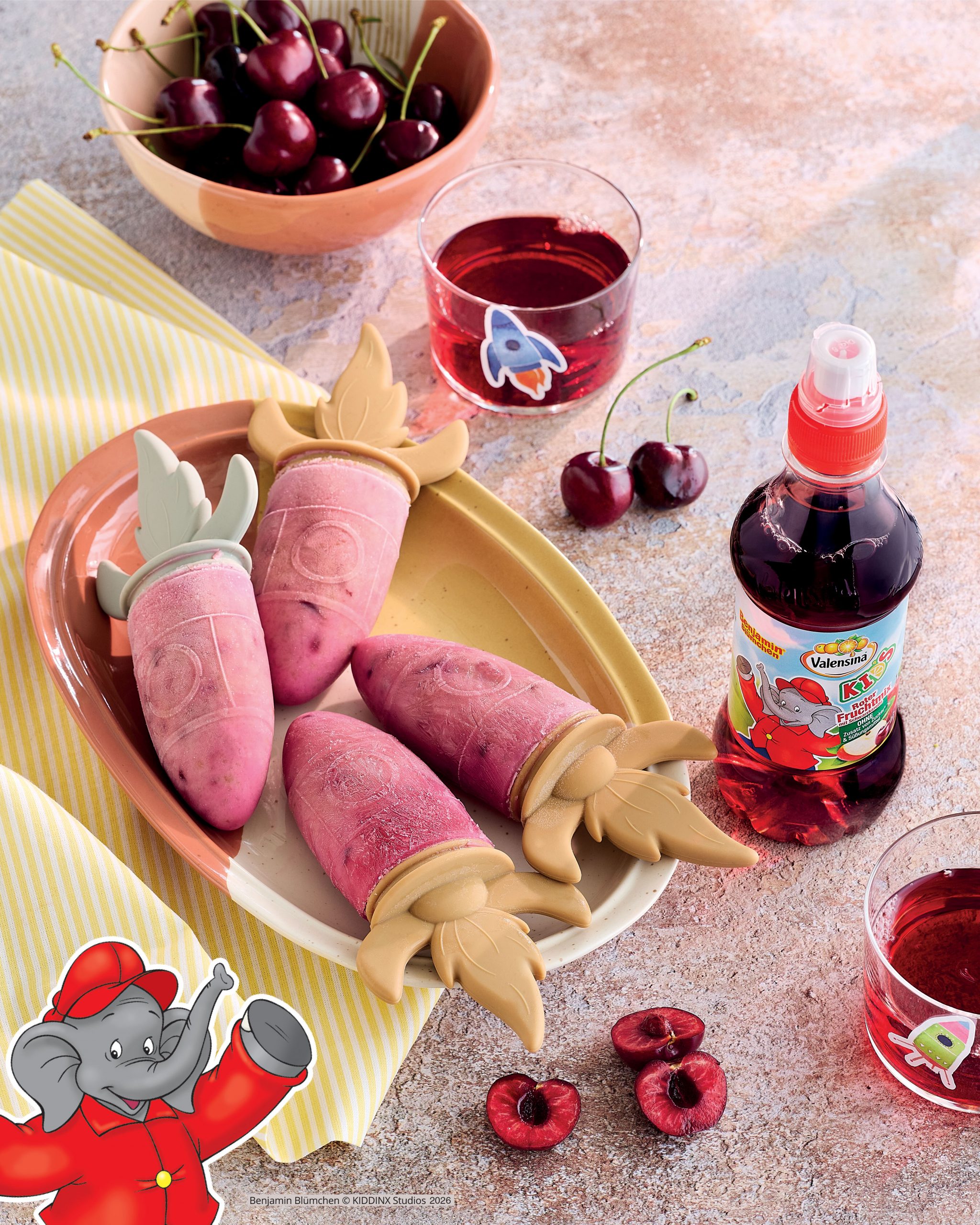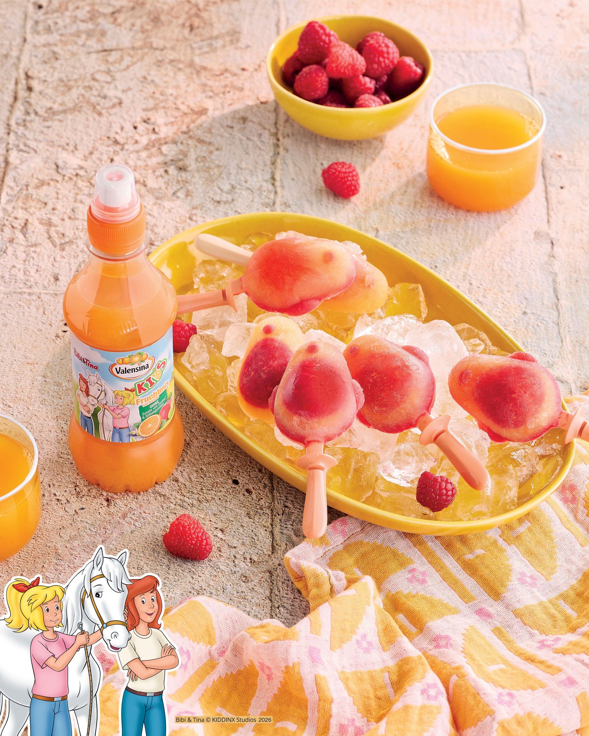 Sommerlicher Spaß am Stiel Zutaten für 9 – 10 Eis am Stiel: 150 g Himbeeren 2 EL Agavendicksaft 300 ml Valensina KIDS „Fruchtmix mit Karotte“ Bibi & Tina außerdem: Eisformen und Eisstiele 2. Das Himbeerpüree...weiterlesen »