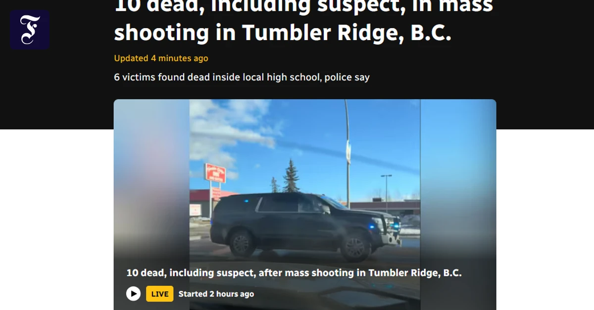Tumbler Ridge (dpa) - . Sieben Tote nach Schüssen in Schule in Kanada Ein Schütze hat in einer Schule in Kanada mindestens sieben Menschen getötet und etwa zwei Dutzend weitere verletzt. Der mutmaßliche...weiterlesen »